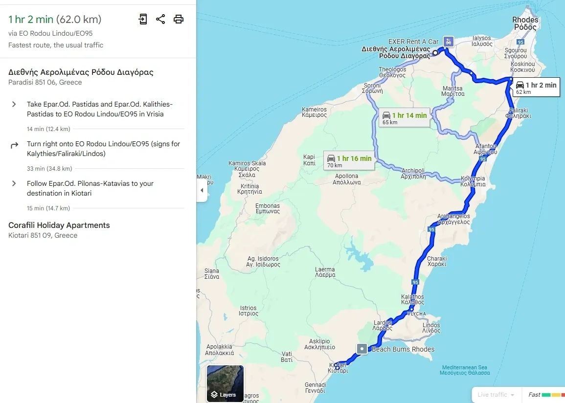 Rhodes International Airport "Diagoras"(61.6km/1:02min) Rhodes Tourist Port - Cruise Terminal (59.3km/1:04min) <<https://www.welcomepickups.com/airport-transfer-book/<<